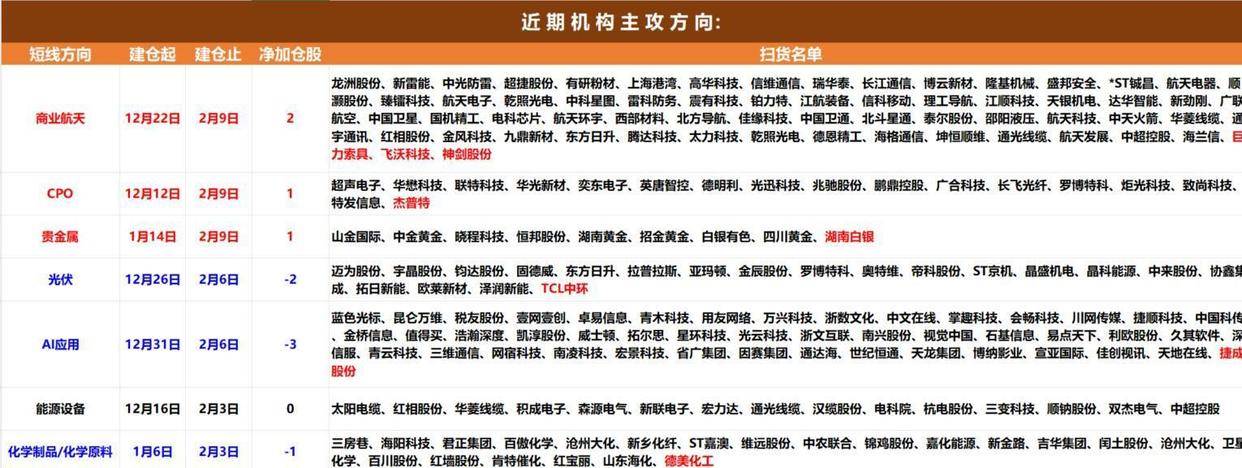 而机构资金的动向则显示出另一种策略。 在2月9日,机构席位整体呈现小幅净流出的状态,买盘微幅萎缩,卖盘则有所释放。 从板块流向来看,机构资金在主线热点中,选择对短期涨幅较大的AI应用、光伏等板块进行了明显的减仓获利了结。 与此同时,他们又将部分仓位转向了涨幅相对较小、或者具备其他催化因素的板块,例如中幅加仓了商业航天,小幅加仓了贵金属和CPO(光模块)。 这种操作表明,尽管长期看好AI方向,但机构在短期节奏上更倾向于高抛低吸,进行均衡配置。