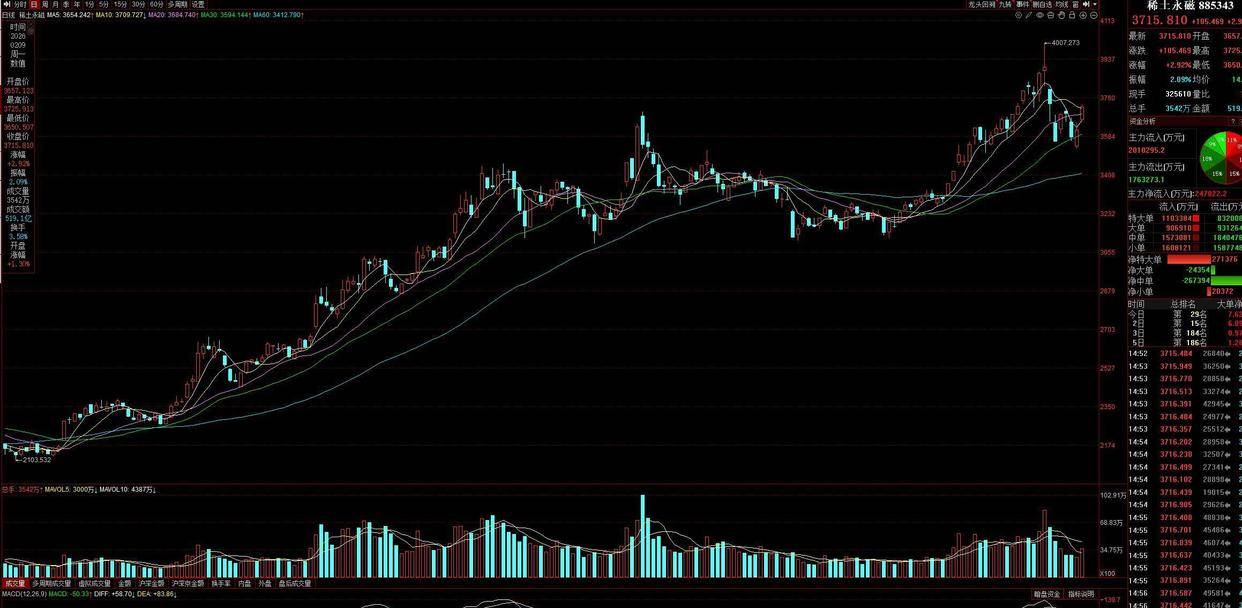AI浪潮的涟漪也波及到了更上游的原材料领域。 稀土,特别是用于制造高性能永磁材料的镨钕元素,价格也出现了显著上涨。 市场数据显示,在2月9日,氧化镨钕和金属镨钕的价格分别大幅上涨了7.59%和6.27%。 今年以来,氧化镨钕的累计涨幅已经达到34%。 这背后的逻辑在于,新能源汽车驱动电机、工业机器人伺服电机、以及低空经济飞行器的电推系统,都离不开高性能稀土永磁材料。 AI所驱动的智能化、自动化革命,正从终端需求上为这些上游资源品提供长期且坚实的支撑。
